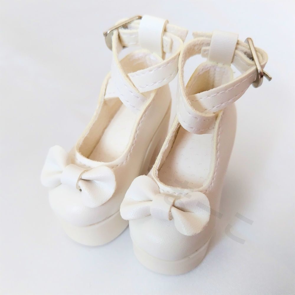 - 訳あり 1/4ドールシューズ 厚底靴 40㎝ 人形 BJD MDD MSD 白色 ホワイト リボン スーパードルフィー 着せ替え ロリータ クラシカル レトロ