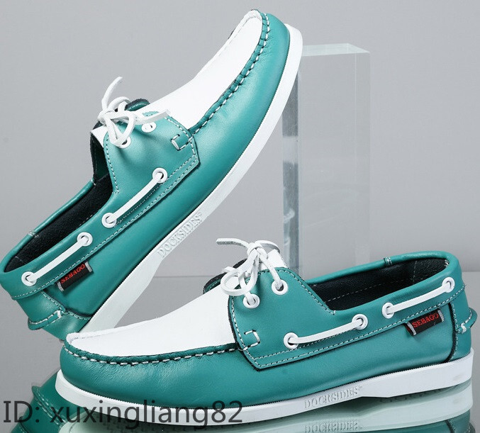 > 新品 本革牛革 デッキシューズ メンズ カジュアル ローファー スニーカー ウォーキング スリッポン 色違いあり 白×緑/26cm