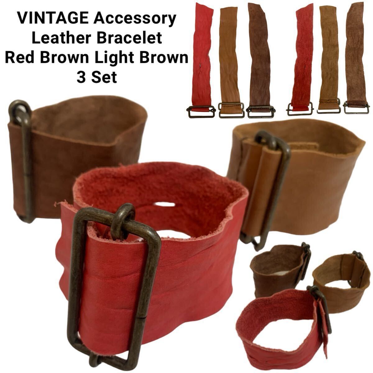- VINTAGE ヴィンテージ アクセサリー ヴィンテージ レザーブレスレット 3点セット レッド系 ブラウン系 ライトブラウン系 アーカイブ