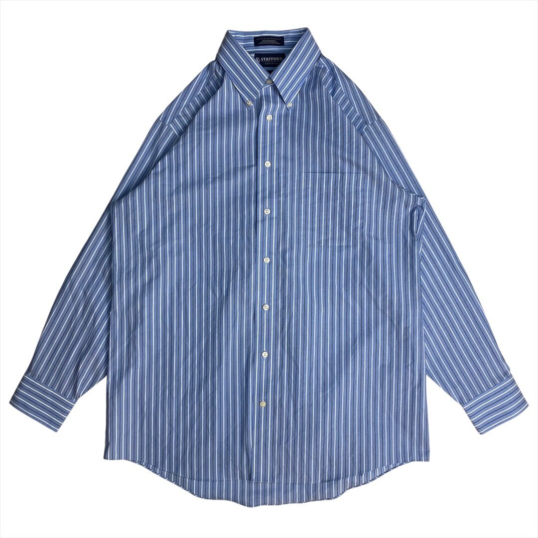 - Vintage STAFFORD ボタンダウン ブレザー シャツ 長袖 メンズ FREE ストライプ 古着 サイズ16 BD ビンテージ ヴィンテージ