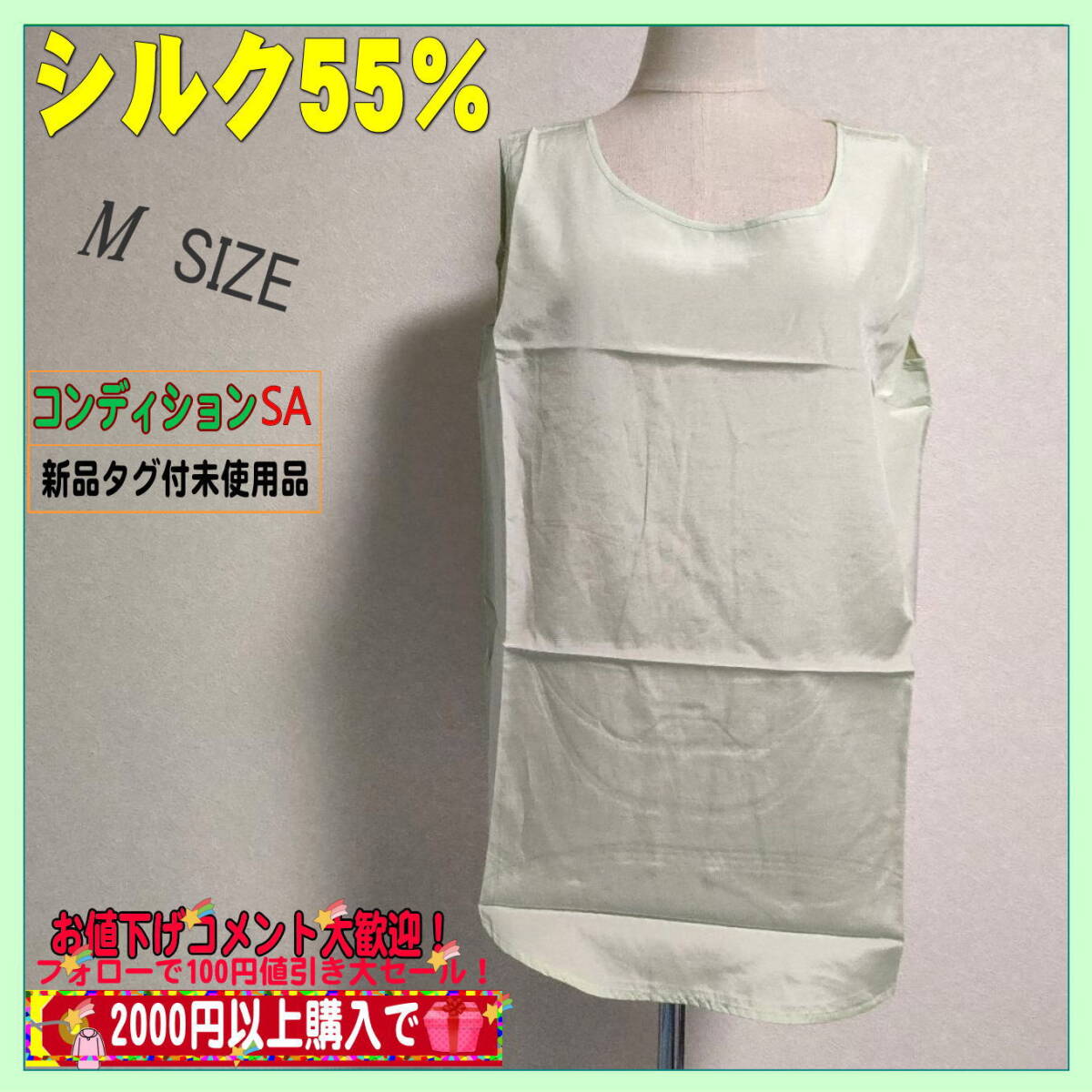- 新品タグ付未使用 シルク55%レディースベスト(表記Mサイズ)うす緑色 送料無料 匿名配送