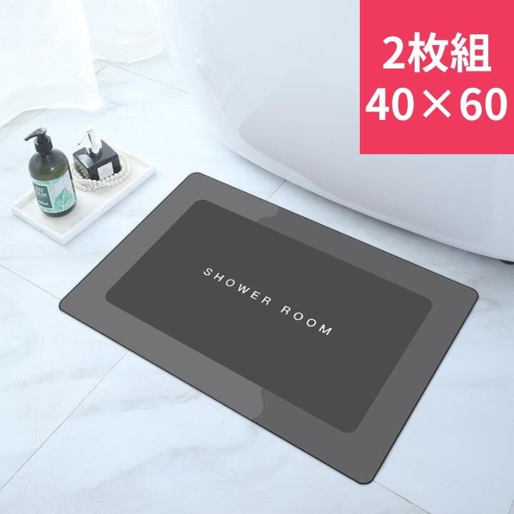 - 2枚組 バスマット 珪藻土 お風呂 浴室 脱衣所 足拭きマット 長方形