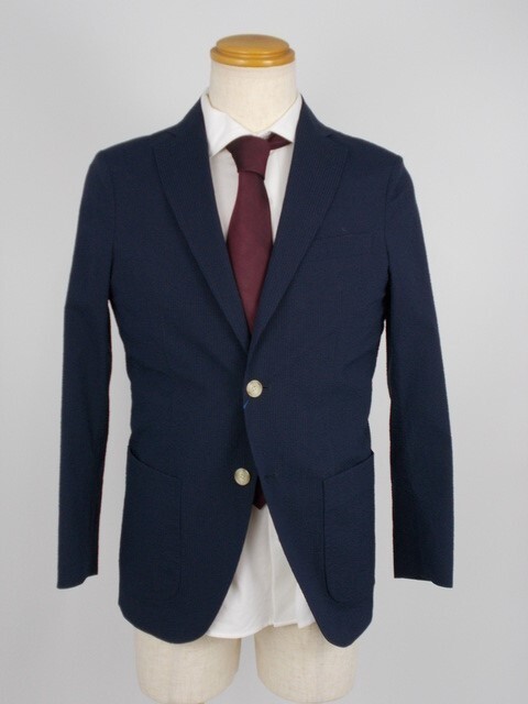 - 売りつくし 新品 4.2万円 高品質 テーラードジャケット 2ボタン メンズ シングル Sサイズ 夏物 ダークネイビー スーツ 柄 綿あり 521
