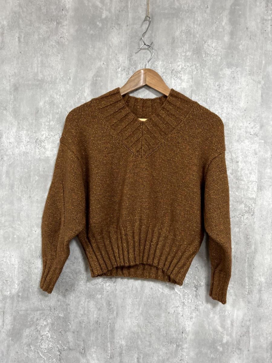 > COMME CA コムサ Vネック ラメ混 ワイド幅 ニット セーター size5/茶 ◆■ レディース