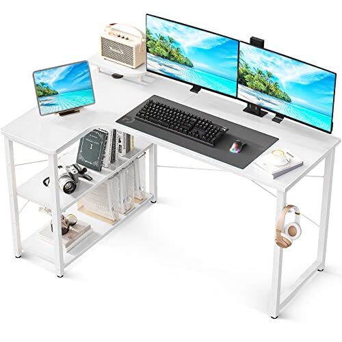 - ODK パソコンデスク L字 ゲーミングデスク 幅130 L字デスク pcデスク デスク 机 ラック付き 収納 コーナーデスク オフィスデスク