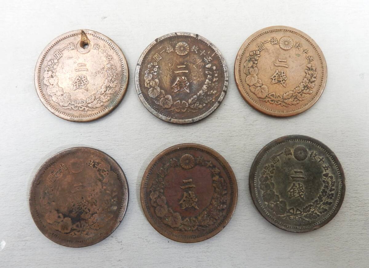- 古銭 大日本 二銭銅貨 6枚 約83.95g 現状品 売り切り