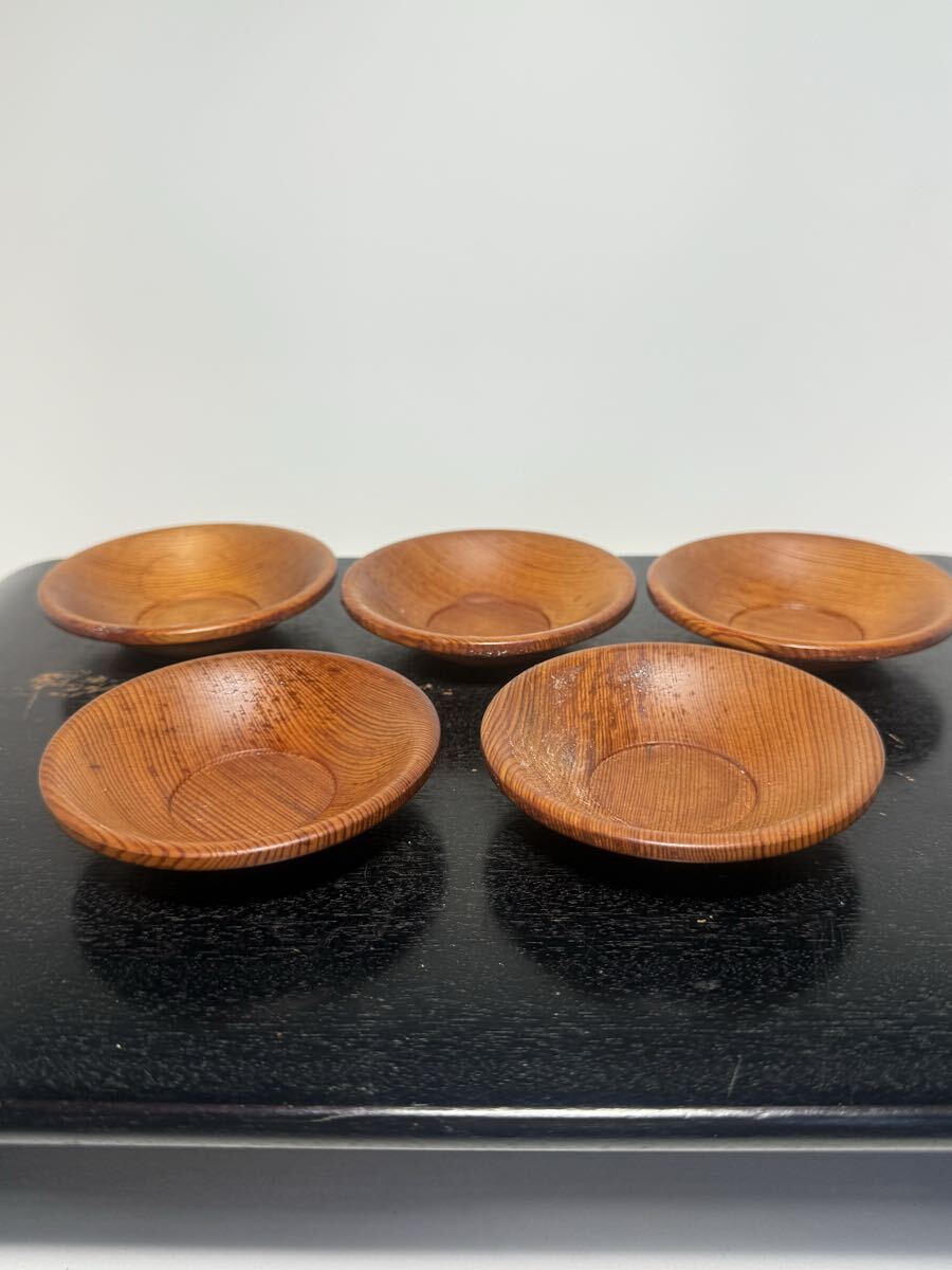 - 初出し品 肥松 茶托5枚 煎茶道具 天然木 木製 生地 ★広島発送★