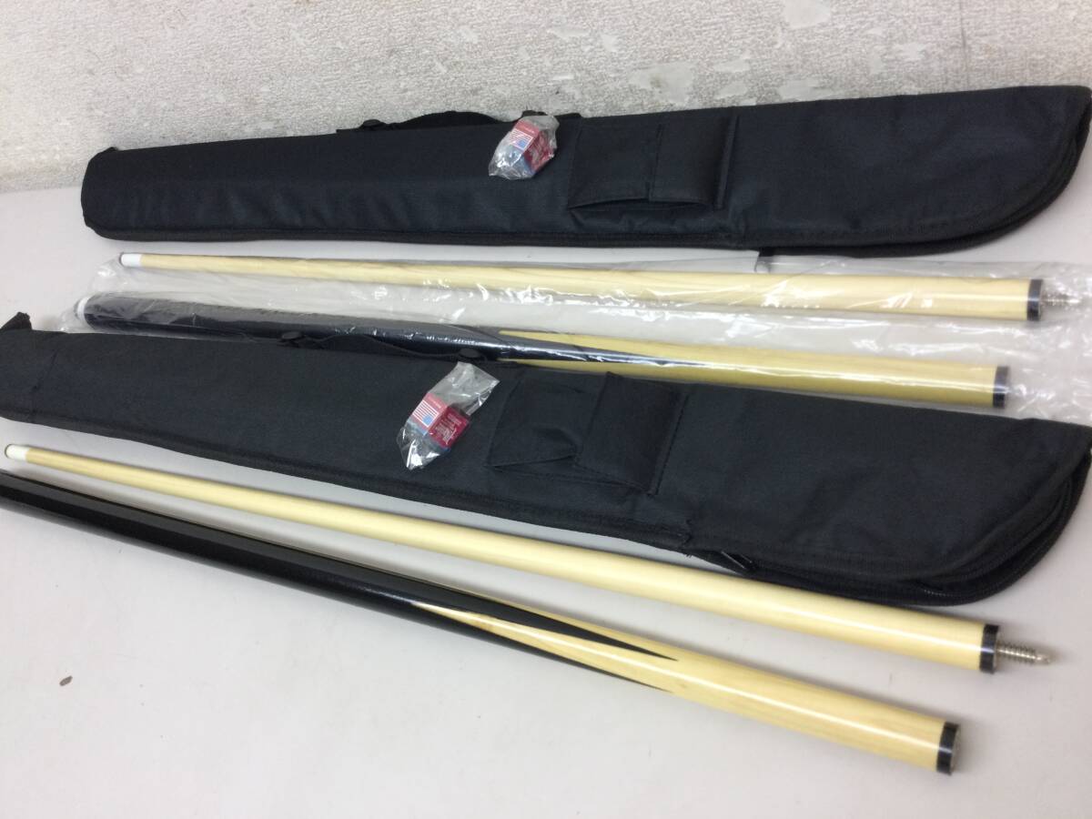 - ★ビリヤード キュー 全長約144.9cm/ 145.5cm ブラック 2本 ケース付き メーカー不明 ④