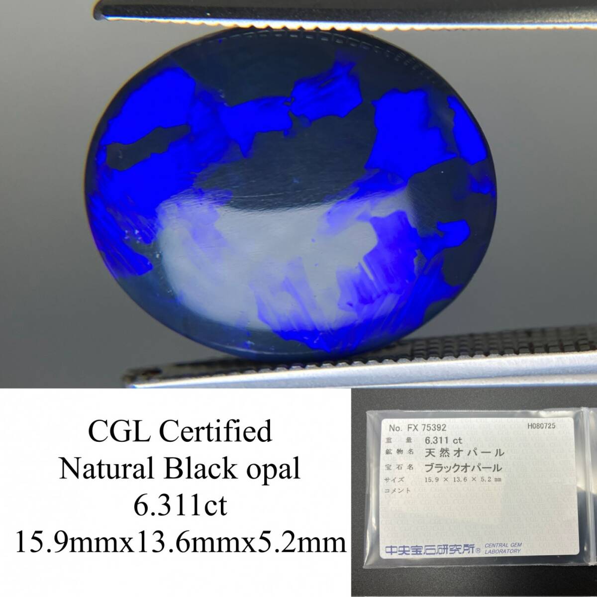> ブラックオパール 天然 6.311ct 中央宝石ソーティング付き 15.9×13.6×5.2 ルース( 裸石 ) 6397YY