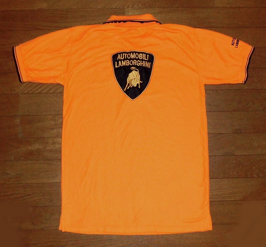 - LAMBORGHINI AUTOMOBILI ランボルギーニ オートモービル ポロシャツ 半袖 鹿の子 刺繍ロゴマーク 襟裏ロゴ ORG L 使用少 美品/フェラーリ