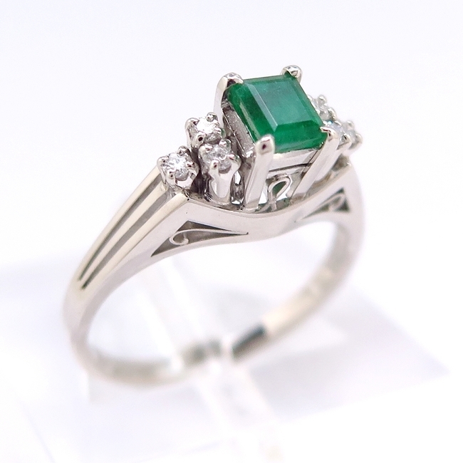 > Pt900 プラチナ リング 指輪 エメラルド0.400ct ダイヤモンド0.100ct 12号 おしゃれ 【中古・新品仕上】/28353/10011702