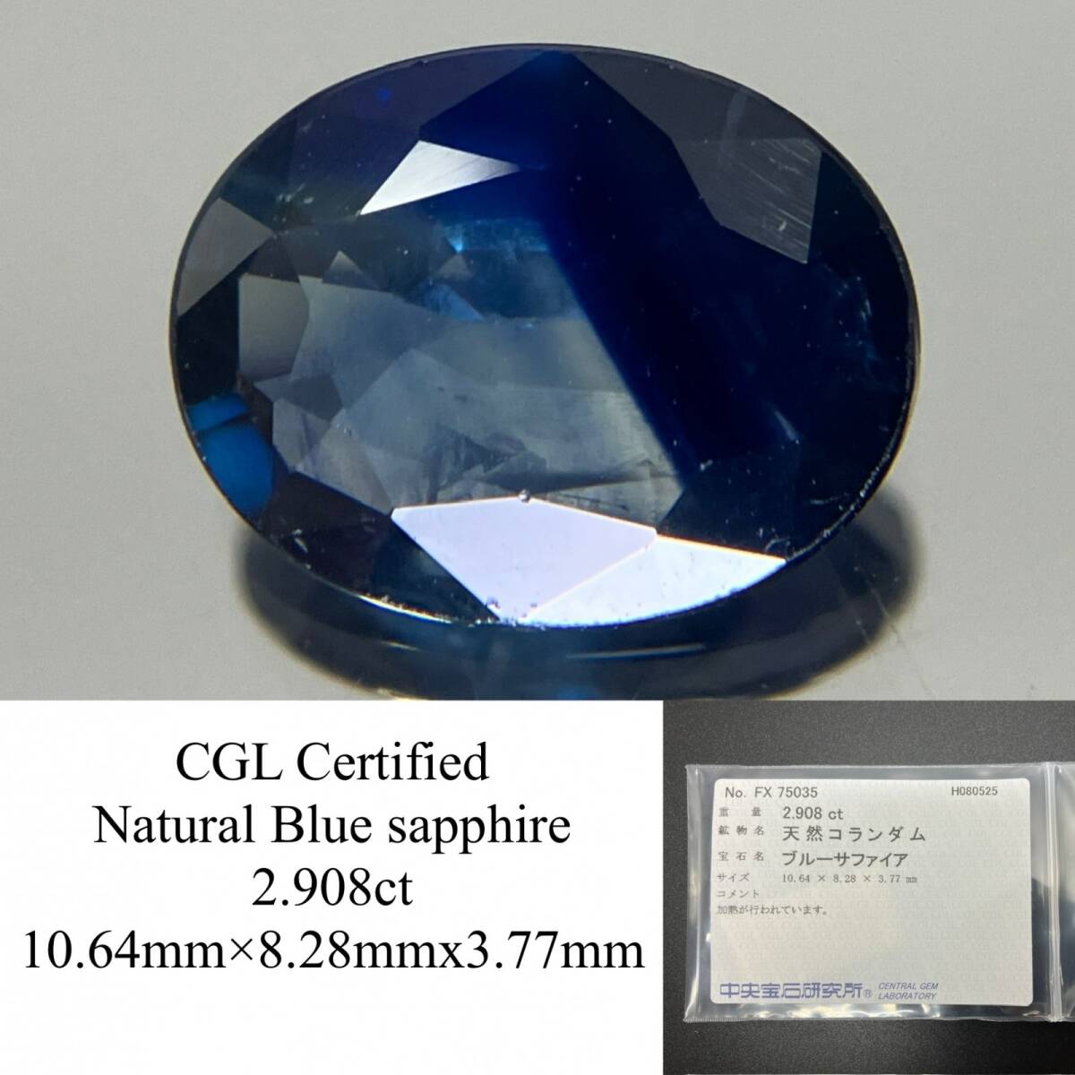 - ブルーサファイア 天然 2.908ct 中央宝石ソーティング付き 10.64×8.28×3.77 ルース( 裸石 ) 6337YY