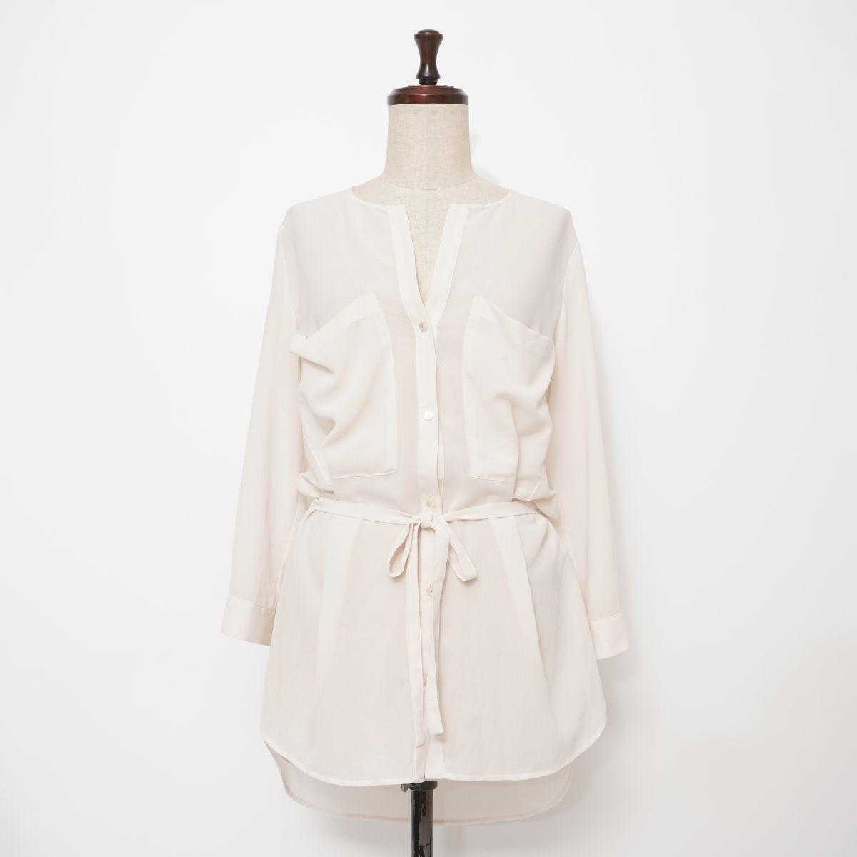 - 美品 LE SOUK ルスーク ウエストマークスキッパーシアーブラウス チュニック トップス レディース オフホワイト サイズ38*FD838