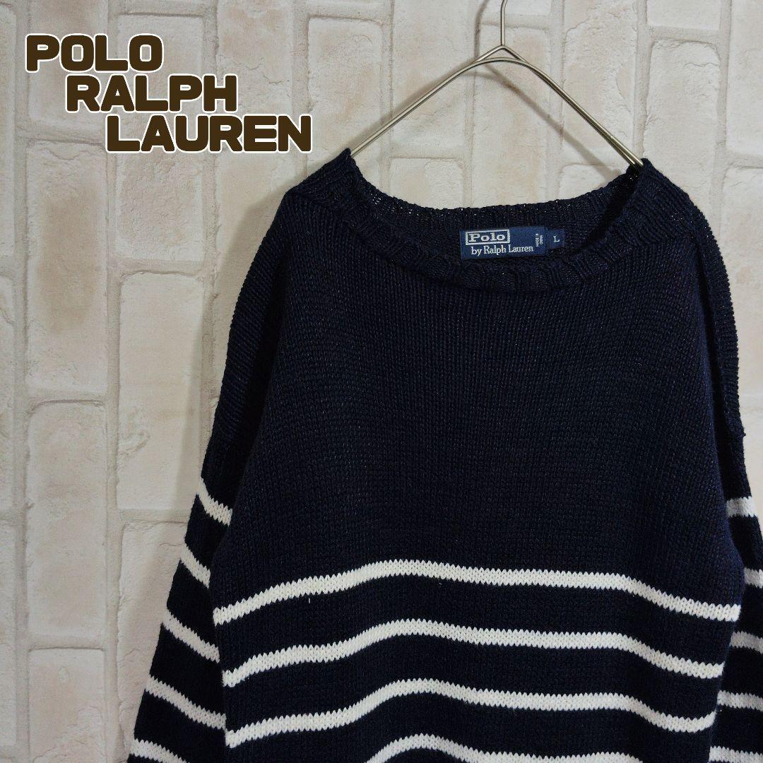- ポロラルフローレン ニット リネン ネイビー 白 ボーダー