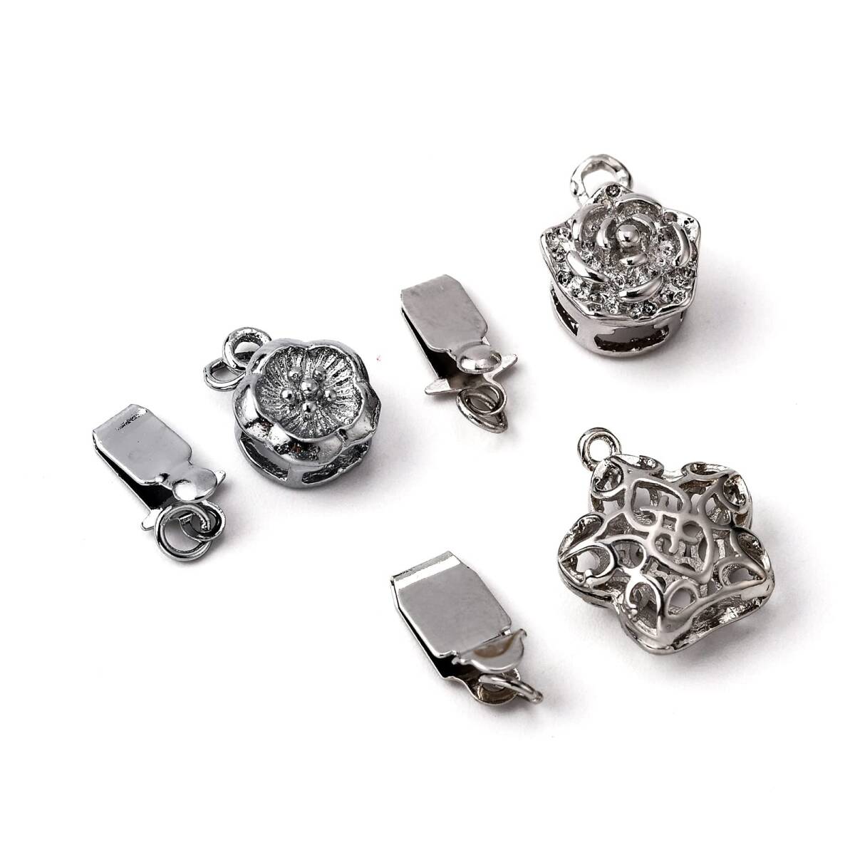 - PandaHall 3セット 真鍮 クラスプ 差込式 留め具 エンドパーツ 紐留め 留め金 PH キラキラ ラインストーン パール
