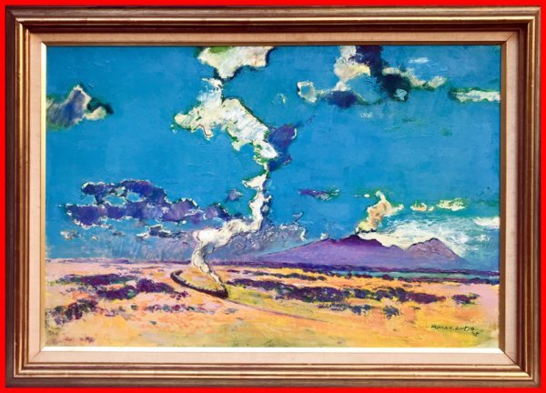 - ◆【真作】◆遠藤ミマン◆蒸気機関車と樽前山◆油彩M30号の大作◆勇払原野を愛した画家◆