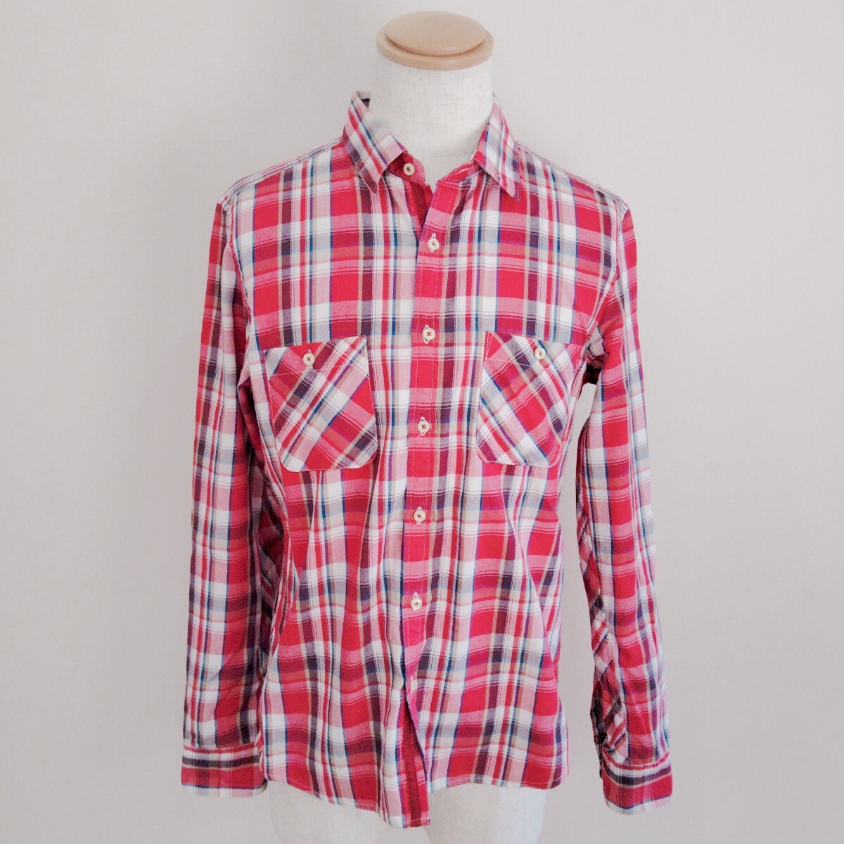 - 0822/L/nanouniverse メンズ 長袖シャツ ブラウス チェック柄 レッド