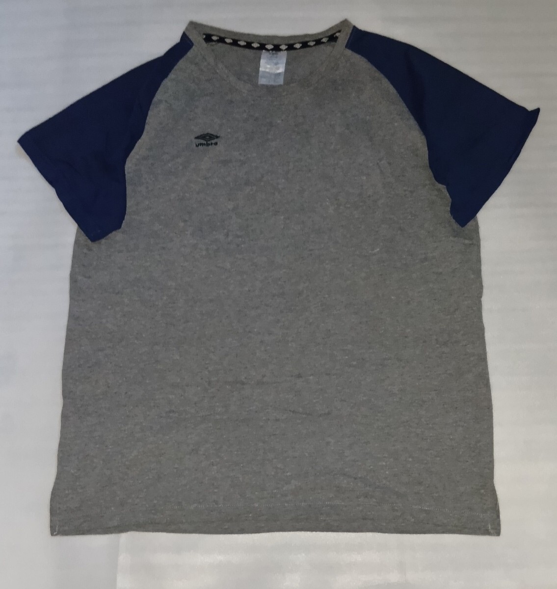 > UMBRO☆サイズL半袖TシャツGLAYグレイ紺色ネイビー刺繍ワンポイント黒スリット有ラグラン ウェア ファッションTEEスポーツ ティー アンブロ
