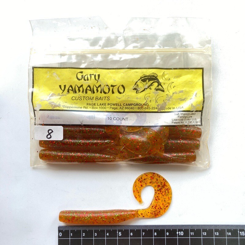 > 814467 ゲーリーヤマモト 6インチ ジャンボグラブ 8本 シングルテール GARY YAMAMOTO #307 ルートビア/レッド&スモールグリーンフレーク