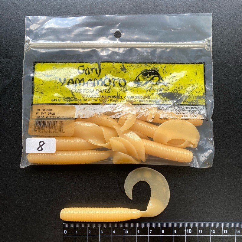> 814466 ゲーリーヤマモト 6インチ ジャンボグラブ 8本 シングルテール GARY YAMAMOTO #036 ホワイトソリッド? いい感じにヤケてます