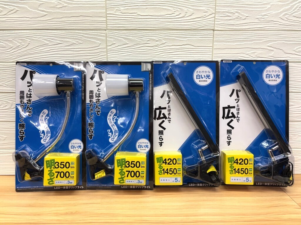- A389 新品 YAZAWA ヤザワ 4点セット パッとはさんで広く照らす LED一体型 昼光色 フレキシブルクリップライト&スクエアタイプ