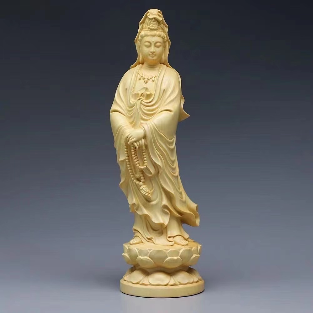 - 特売!極上品 黄楊木 観音菩薩 観音様 極上木彫 招財開運 鎮宅辟邪 精密細工 高さ12cm