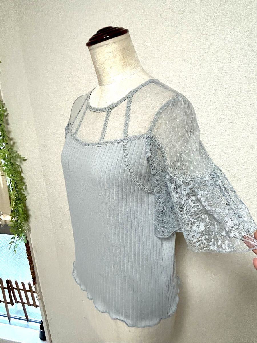 - 【 NICE CLAUP★ナイスクラップ】チュールレース切り替えカットソー・Fサイズ