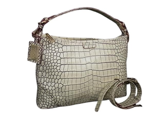 - ココセリュックスゴールド ハンドバッグ - クロコダイル型押しレザー - 2WAY ゴールド金具 アイボリー【本物保証】