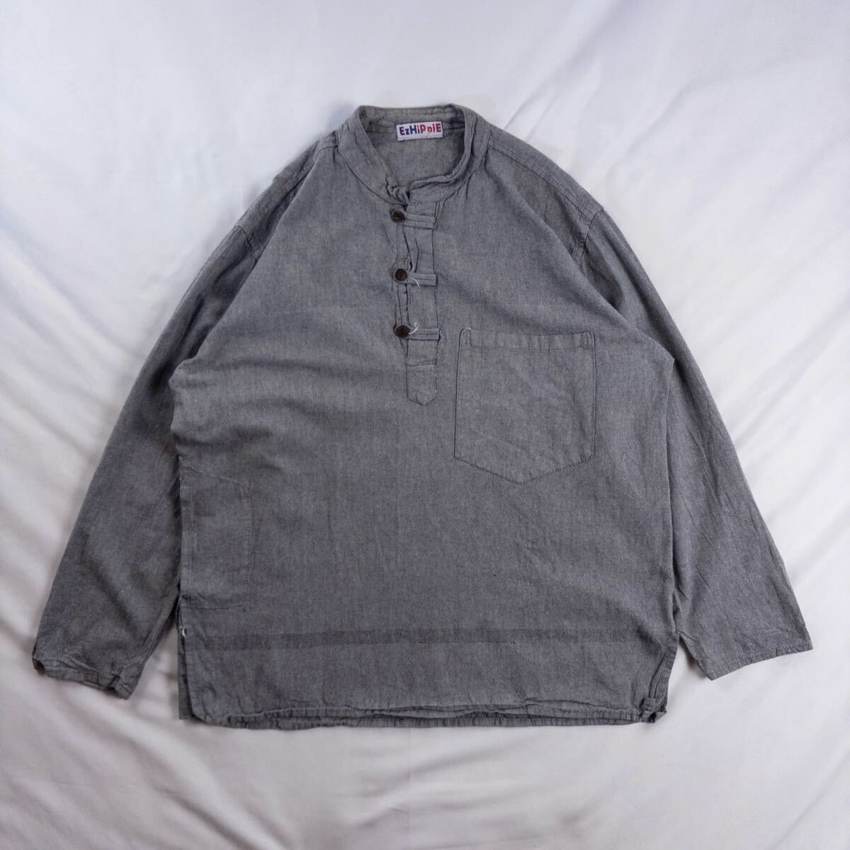 - US Vintage 80-90s Ez Hippie コットン バンドカラー ハーフボタン 異素材 ドビー織り ドライタッチ エスニック 民族 プルオーバー シャツ