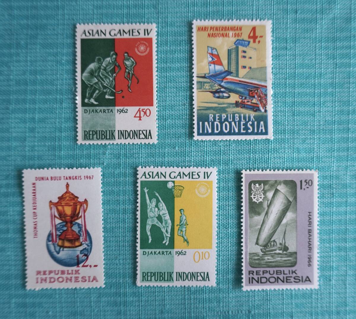 - ■INDONESIA ASIAN GAMES IVインドネシア 切手5枚セット② バスケ