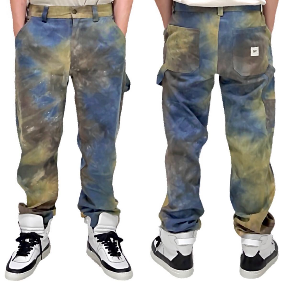 - 新品 CAT Caterpillar キャタピラー タイダイ ダーティー ムラ染め ウォッシュ加工 アメリカ建設重機 ツイル ペインター ワーク パンツ W30