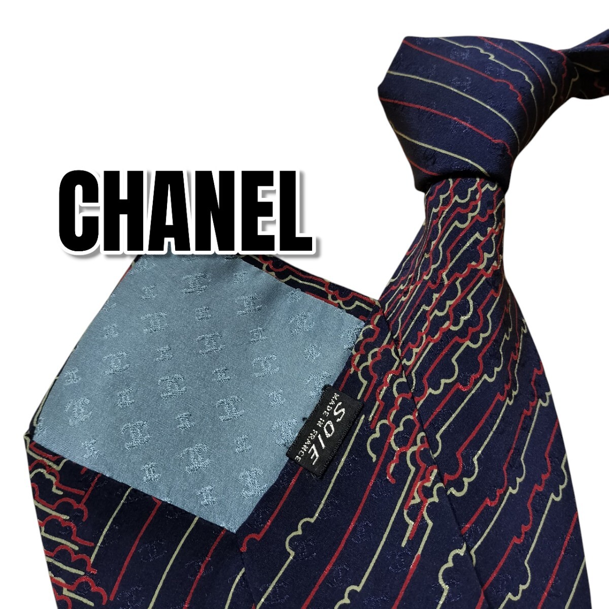 - CHANEL シャネル ネイビー系 ストライプ柄 フランス製
