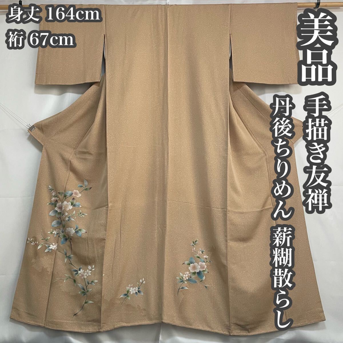 > #H862 美品 付け下げ 手描き友禅 薪糊散らし 金彩加工 牡丹 正絹 身丈164cm 裄67cm 紋無し 和装 和服 フォーマル 着物【wellriver】