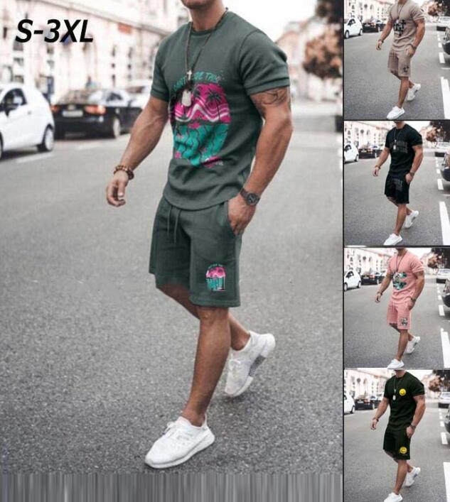 - ジャージ スウェット メンズ 上下 2点セット セットアップ 部屋着 半袖 パンツ 夏 スポーツ プリント柄トレーナー S-3XL
