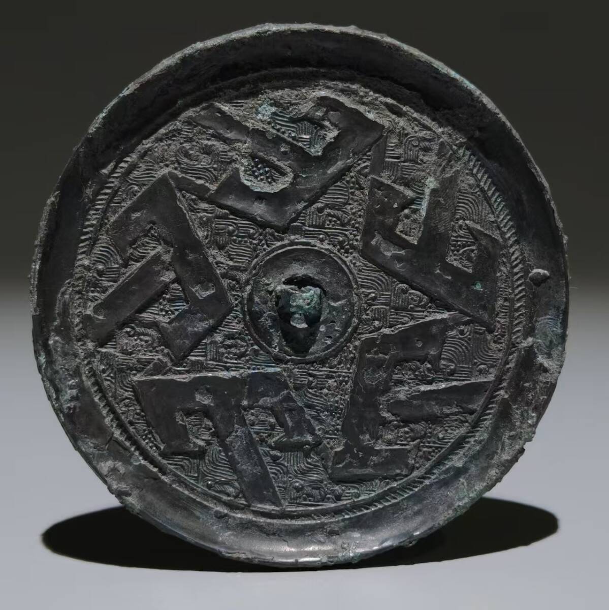 - 時代旧蔵 戦国時代 ブロンズ五山小手鏡 銅製 古美術 細密細工 廃寺旧蔵 廃寺買出品820