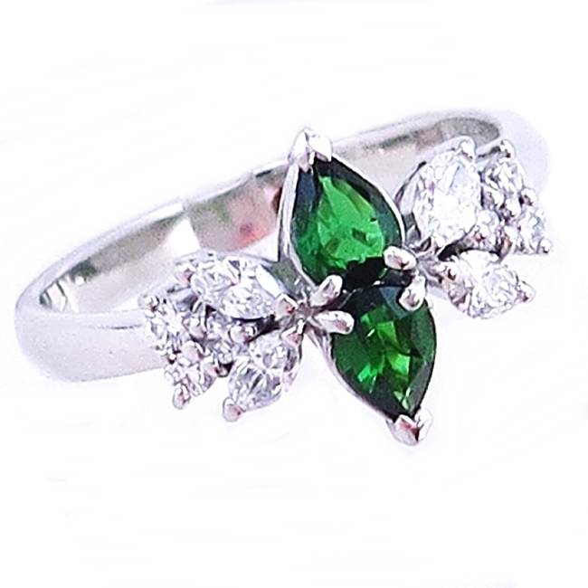 - Pt900 ★ プラチナ リング ツァボライト0.880ct 10月誕生石 ◇ダイヤモンド0.590ct 4月誕生石 ●22号【中古】/s22944/10004586