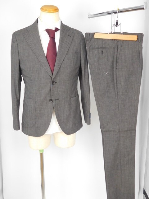 - 売りつくし 新品6.4万円 高品質イタリア生地 夏物『Marzottoマルゾット』ウール シングルスーツ 上下 チャコールグレー 柄 AB4 494-3
