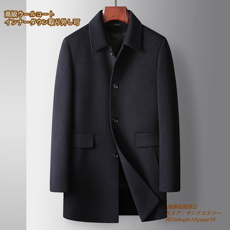 > 超美品 メンズコート カシミヤ ビジネスコート チェスターコート セレブ*WOOL 紳士ダウン ロングコート 厚手 ウール アウター ブラック 2XL