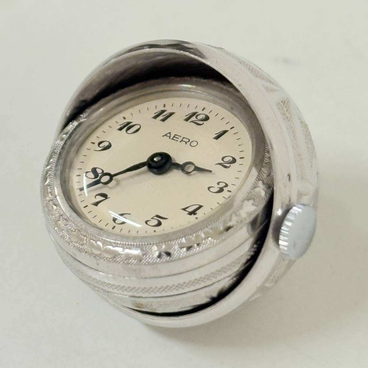 - 稼働品 AERO アエロ ペンダントウォッチ 手巻き 球体 懐中時計 シルバー スイス製 SWISS MADE アンティーク 【0823-A】
