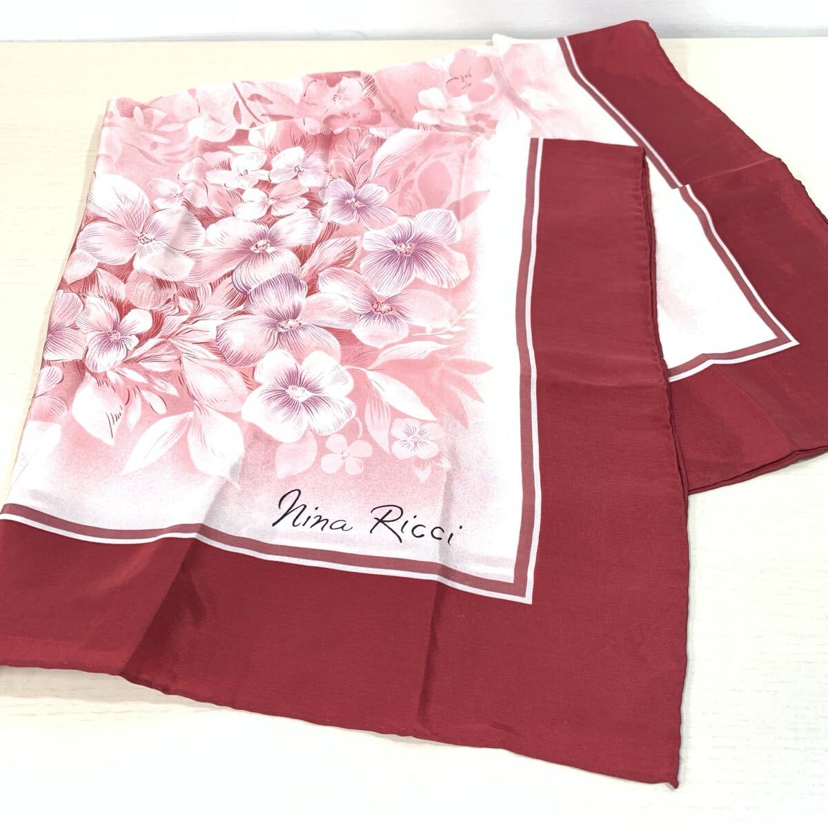 ニナリッチ Nina Ricci シルクスカーフ 絹100% スカーフ 7878 赤 ピンク 花柄(08227C