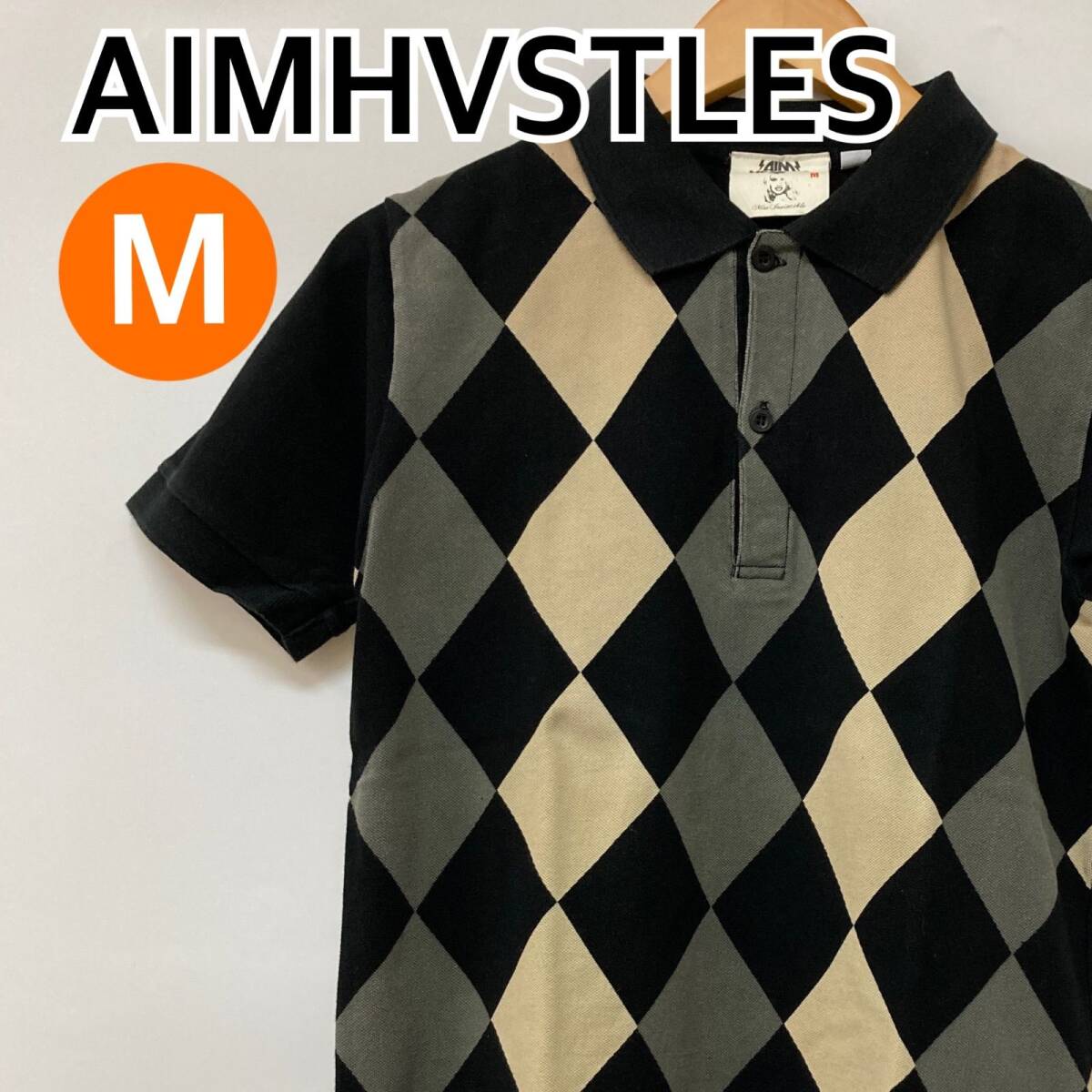 - AIMHVSTLES トップス ポロシャツ アーガイル柄 半袖 ブラック レディース Mサイズ【CT1537】