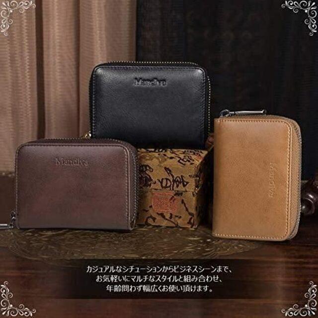 - ミニ財布 メンズ 小銭入れ 大容量コインケース【ダークブラウン】