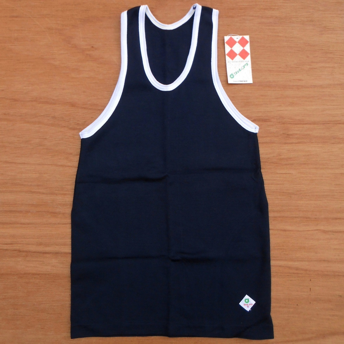 > 新品未使用 '70s Jelenk ジェレンク 濃紺x白 タンクトップ S 体操服 運動着 学校 体育 ヴィンテージ 昭和 レトロ 当時物 asics アシックス