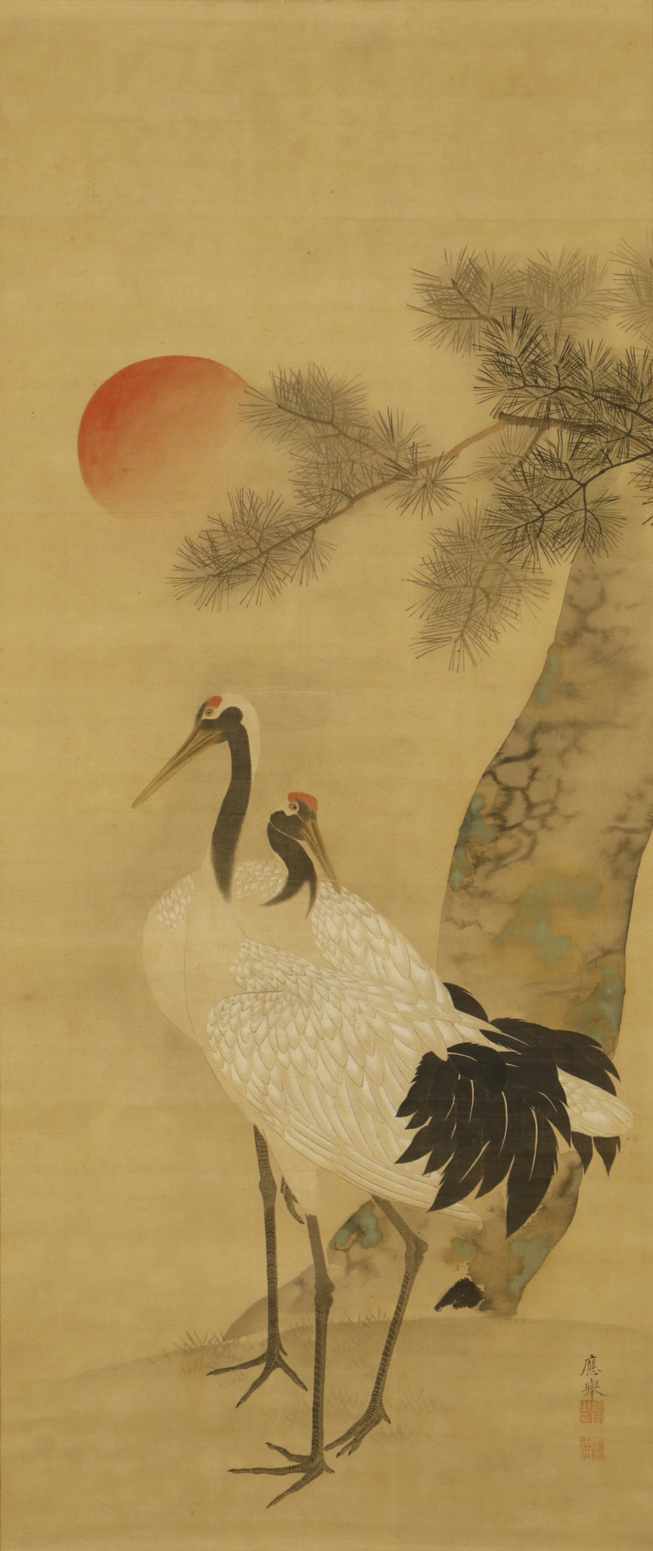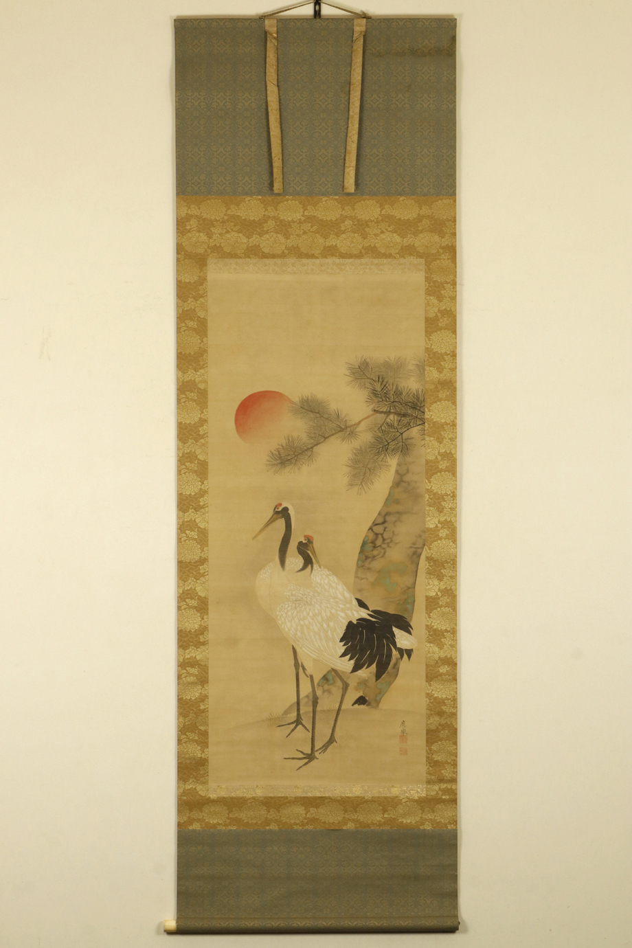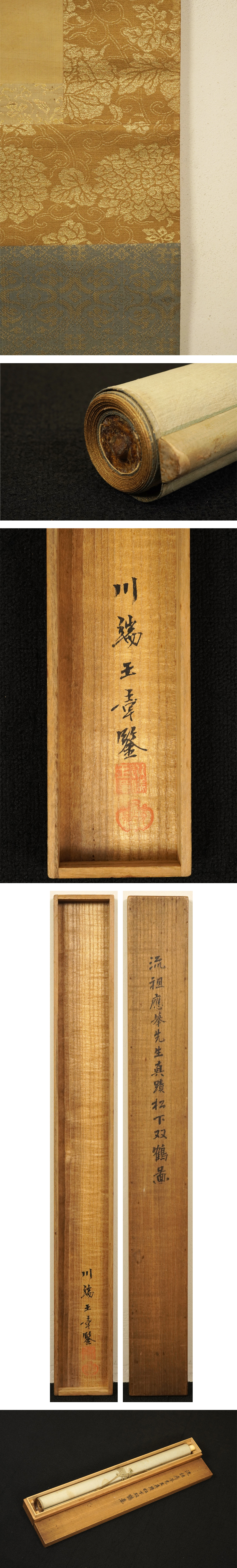 - 【真作 川端玉章箱書 江戸動物画】掛軸「円山応挙 松下双鶴図」絵画 江戸中期 絵師 円山派祖 狩野派石田幽汀師事