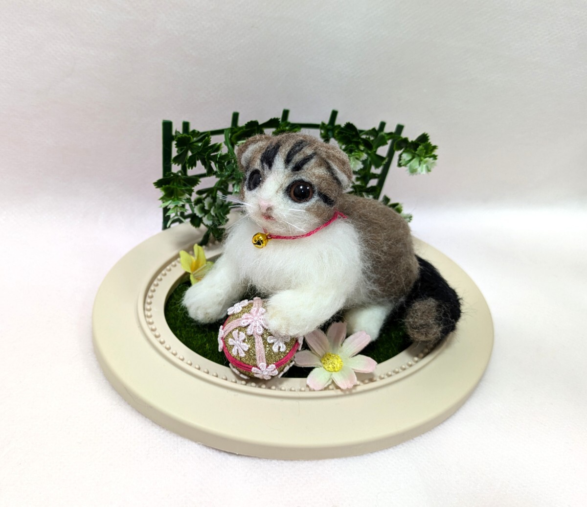 - 羊毛フェルト 猫 ネコ ねこ スコティッシュフォールド ぬいぐるみ ミニチュア ハンドメイド インテリア 置物