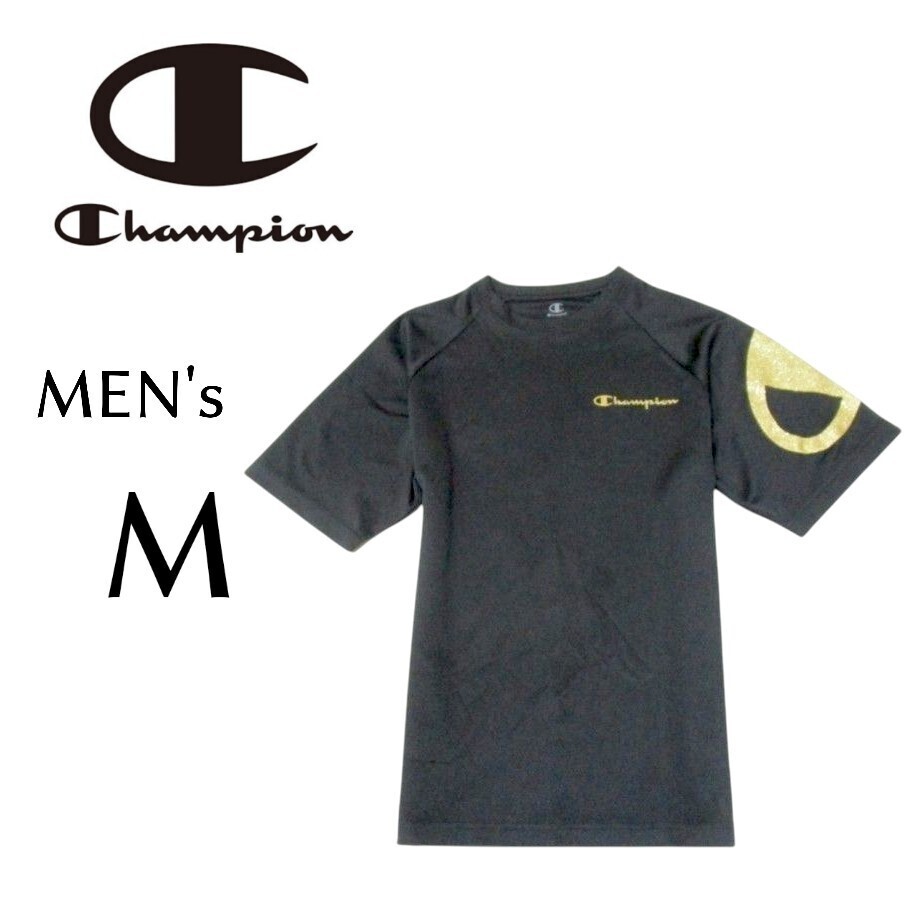 > 送料込み メンズMサイズ Champion チャンピオン 半袖プラクティスシャツ 黒×金 スポーツウエア