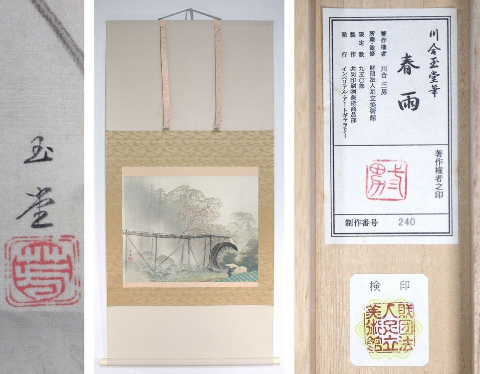 - 【複製工芸】 川合玉堂「春雨」絹本 印刷 工芸 掛軸 共箱 タトウ箱 限定950部 第240番