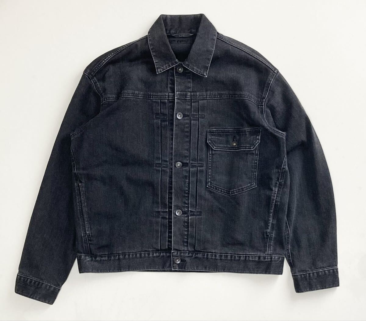 > 廃盤 レア ユニクロ ブラック デニムジャケット 1stタイプ フェード ビッグサイズ