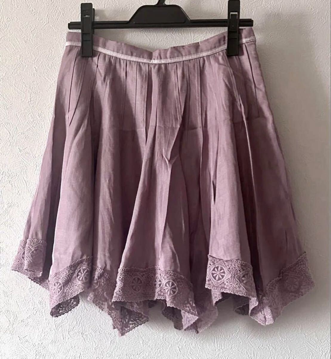 > 薄紫 イレギュラー フレアスカート レース エディットコロン プロポーションボディドレッシング ピンク ミニスカート