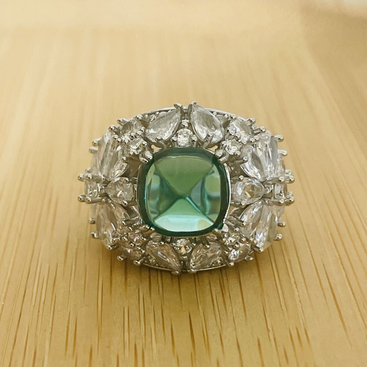 - 【美しい花柄】エメラルド?昭和リング ヴィンテージ サイズ13号